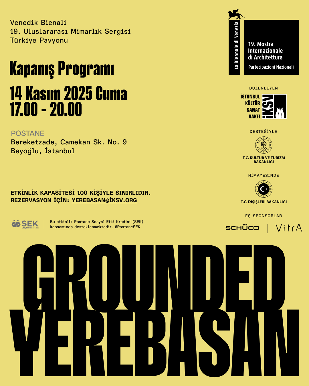 Venedik Bienali 19. Uluslararası Mimarlık Sergisi sona yaklaşırken, Yerebasan sergisinin odağındaki farklı başlıkları sergi katılımcılarıyla birlikte ele aldığımız; hem sergiyi gezenlerin merakını derinleştiren hem de yerinde göremeyenlerin kapsamlı bir çerçeve edinmesini hedefleyen bir kapanış programında buluşuyoruz.